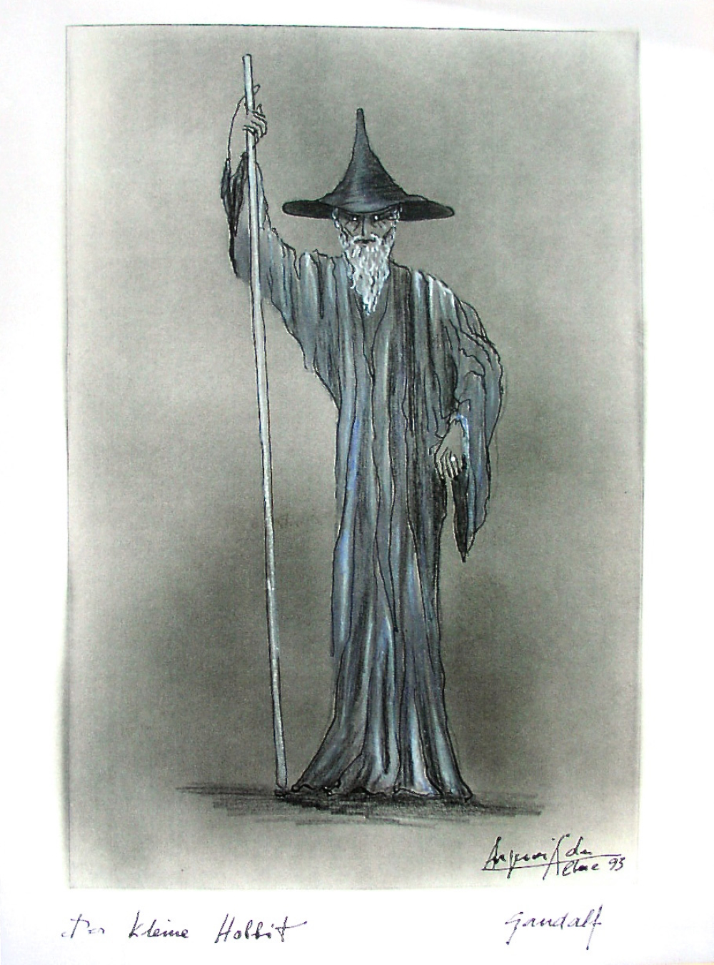 "In art the human being has disappeared from the centre. But I look for the space for imagination." These comments that Ludwig Angerer aka Angerer, der Aeltere (the senior) told to the German daily newspaper ‚Hamburger Morgenpost‘ sum it all up for him. They were spoken two days prior to the first night of the stage-version based on the 1937 book by the legendary „Lord Of The Rings“-author in early February 1994 – an event, this creative was involved in. An obvious choice to engage him for as he’s known being the master of magic pictures. But that’s not all. This artist is a very versatile one: painter, sculptor, architect, author. The basis of his skills is a solid education. Ludwig Angerer (* 7 August 1938 in Bad Reichenhall, Bavaria, Germany) studied architecture in Munich from 1957 to 1961 and then another four years at the Academy of Fine Arts. This was followed by the job as a design architect in the office of architect Alexander von Branca. From 1975 on he was a freelancer. His numerous artistic activities in different genres include the conceptual artistic work for "The Neverending Story II: The Next Chapter". For his participation in the movie the admirer of the poems by Hoelderlin, the key figure of German Romanticism, received the Bavarian Film Award in 1989. A few years later Angerer, der Aeltere designed the tomb for Michael Ende, author of The Neverending Story, who is buried on Munich’s Waldfriedhof.