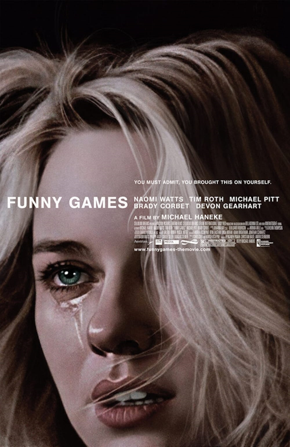 Eventually becoming an independent contractor, Ms. Stehrenberger left the full-time position and launched her career with an (unexpected) bang: her poster for Michael Haneke’s thriller ‘Funny Games’ came out in 2007 and caused a stir. The giant close-up of crying actress Naomi Watts isn’t a photo by the way, but a hyperrealistic digital illustration! Considering the technique, it’s no surprise that she cites photorealistic painter Chuck Close as one of her influences. As far as film posters, Bob Peak (1927-1992) became her first influence when starting in the industry because she admired his versatility, “best known for his developments in the design of the modern film poster“ (Wikipedia) like West Side Story, Star Trek (I-V), Superman or Apocalypse Now.” Other influences are the “weird, imaginative and sometimes crude look” of Polish and Czech film posters.